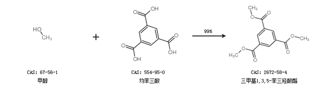 2.通过甲醇和均苯三酸合成三甲基1,3,5-苯三羟酸酯,收率约99%;