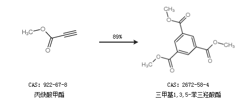1.通过丙炔酸甲酯合成三甲基1,3,5-苯三羟酸酯,收率约89%;