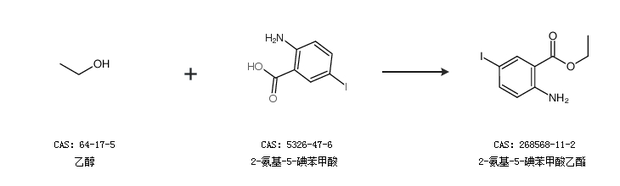 2.通过乙醇和2-氨基-5-碘苯甲酸合成2-氨基-5-碘苯甲酸乙酯