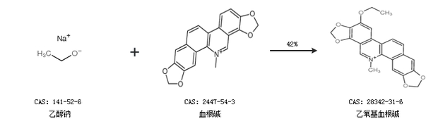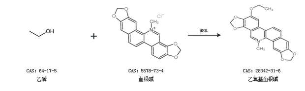 1.通过乙醇和血根碱合成乙氧基血根碱,收率约98%;
