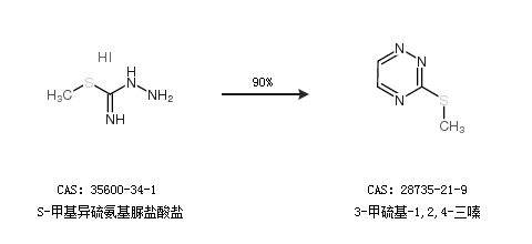 1.通过S-甲基异硫氨基脲盐酸盐合成3-甲硫基-1,2,4-三嗪,收率约90%;