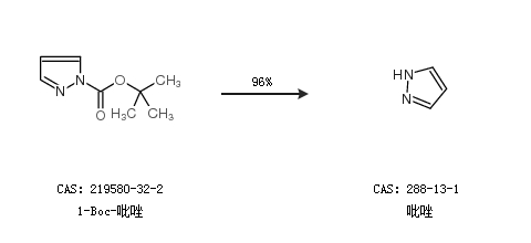 2.通过1-Boc-吡唑合成吡唑,收率约96%;