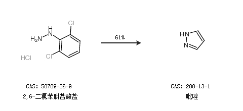 1.通过2,6-二氯苯肼盐酸盐合成吡唑,收率约61%;