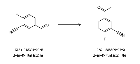 2.通过2-氟-5-甲酰基苯腈合成2-氟-5-乙酰基苯甲腈