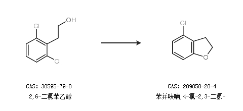 1.通过2,6-二氯苯乙醇合成苯并呋喃,4-氯-2,3-二氢-