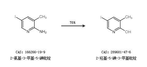 1.通过2-氨基-3-甲基-5-碘吡啶合成2-羟基-5-碘-3-甲基吡啶,收率约76%;