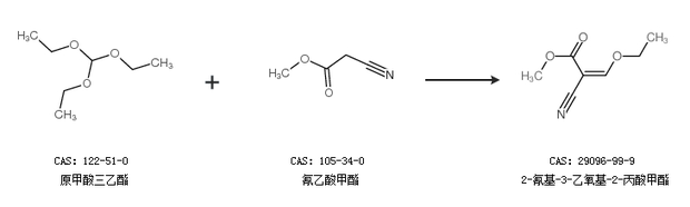 1.通过原甲酸三乙酯和氰乙酸甲酯合成2-氰基-3-乙氧基-2-丙酸甲酯