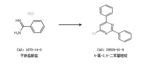 1.通过苄脒盐酸盐合成4-氯-2,6-二苯基嘧啶