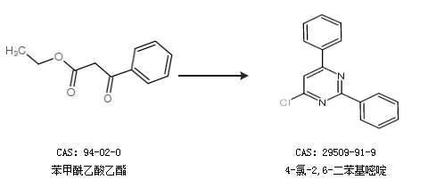 2.通过苯甲酰乙酸乙酯合成4-氯-2,6-二苯基嘧啶