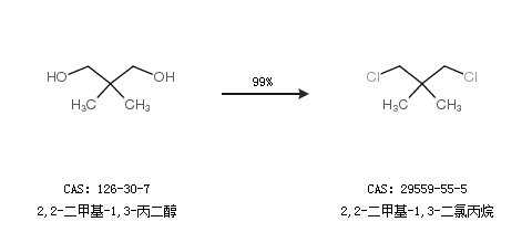 1.通过2,2-二甲基-1,3-丙二醇合成2,2-二甲基-1,3-二氯丙烷,收率约99%;