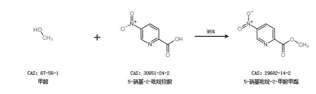 1.通过甲醇和5-硝基-2-吡啶羧酸合成5-硝基吡啶-2-甲酸甲酯,收率约95%;