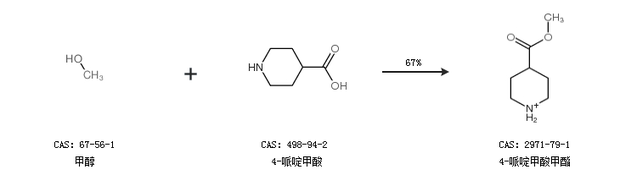 2.通过甲醇和4-哌啶甲酸合成4-哌啶甲酸甲酯,收率约67%;