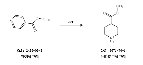 1.通过异烟酸甲酯合成4-哌啶甲酸甲酯,收率约94%;