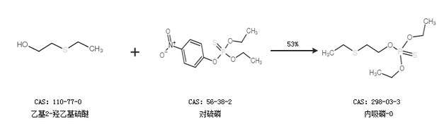 1.通过乙基2-羟乙基硫醚和对硫磷合成内吸磷-O,收率约53%;