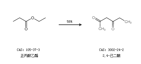 1.通过正丙酸乙酯合成2,4-己二酮,收率约58%;