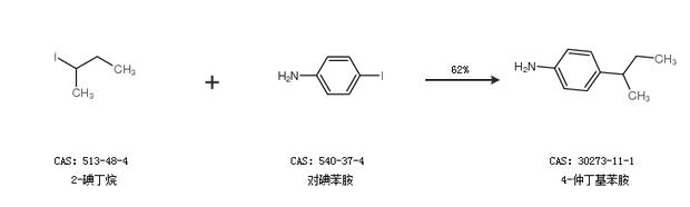 2.通过2-碘丁烷和对碘苯胺合成4-仲丁基苯胺,收率约62%;