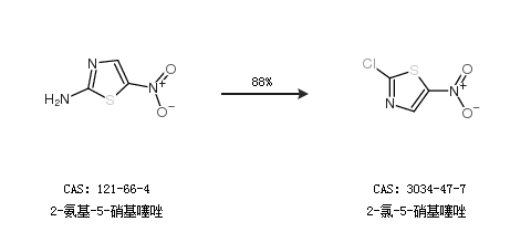 1.通过2-氨基-5-硝基噻唑合成2-氯-5-硝基噻唑,收率约88%;