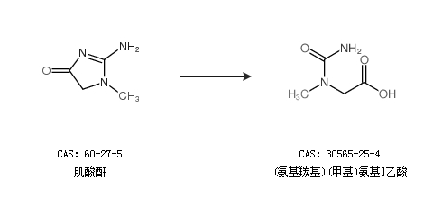 英文别名 3-Methyl-hydantoinsaeure;CMS;3-methyl-hydantoic acid;(N-Methyl-ureido)-essigsaeure;[carbamoyl(methyl)amino]acetic acid;Carbamoyl Sarcosine;N-Methyl-N-carboxymethyl-harnstoff;[(aminocarbonyl)(methyl)amino]acetic acid;N-Carbamoylsarcosine;N-Carbamoyl-sarkosin;