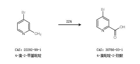 1.通过4-溴-2-甲基吡啶合成4-溴吡啶-2-羧酸,收率约22%;
