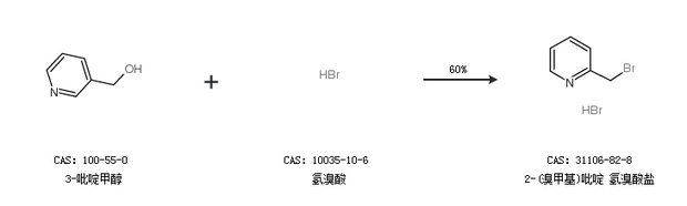 1.通过3-吡啶甲醇和氢溴酸合成2-(溴甲基)吡啶 氢溴酸盐,收率约60%;