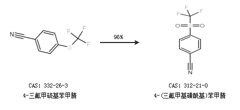 1.通过4-三氟甲硫基苯甲腈合成4-(三氟甲基磺酰基)苯甲腈,收率约96%;
