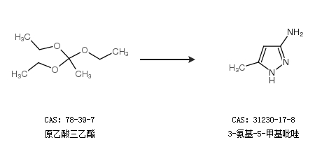2.通过原乙酸三乙酯合成3-氨基-5-甲基吡唑