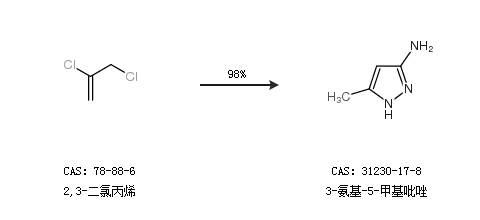 1.通过2,3-二氯丙烯合成3-氨基-5-甲基吡唑,收率约98%;