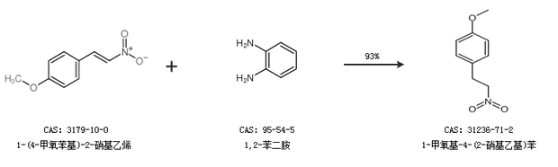2.通过1-(4-甲氧苯基)-2-硝基乙烯和1,2-苯二胺合成1-甲氧基-4-(2-硝基乙基)苯,收率约93%;