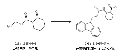 1.通过2-环己酮甲酸乙酯合成N-芴甲氧羰基-(1S,2S)-2-氨基环己烷羧酸