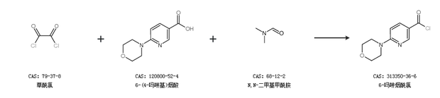 1.通过草酰氯、6-(4-吗啉基)烟酸和N,N-二甲基甲酰胺合成6-吗啉烟酰氯