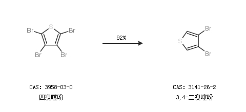 2.通过四溴噻吩合成3,4-二溴噻吩,收率约92%;