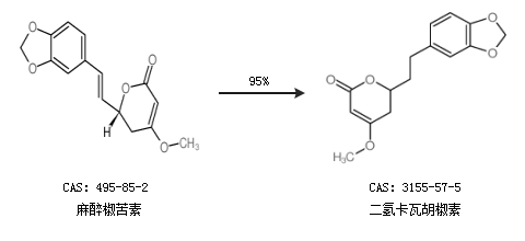 1.通过麻醉椒苦素合成二氢卡瓦胡椒素,收率约95%;