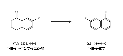 1.通过7-溴-3,4-二氢萘-1(2H)-酮合成7-溴-1-氟萘