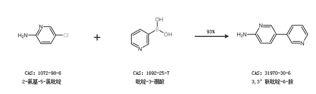 1.通过2-氨基-5-氯吡啶和吡啶-3-硼酸合成3,3’联吡啶-6-胺,收率约93%;