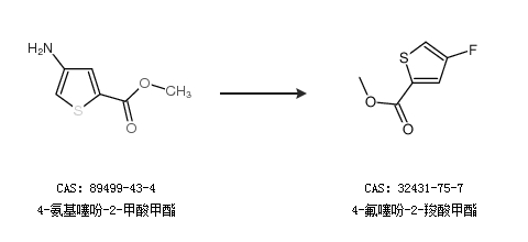 1.通过4-氨基噻吩-2-甲酸甲酯合成4-氟噻吩-2-羧酸甲酯