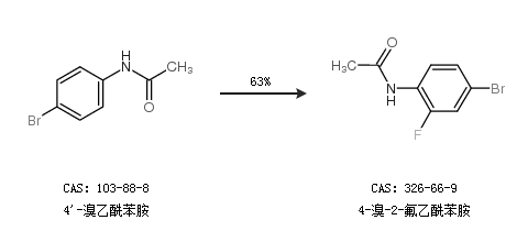 2.通过4''-溴乙酰苯胺合成4-溴-2-氟乙酰苯胺,收率约63%;