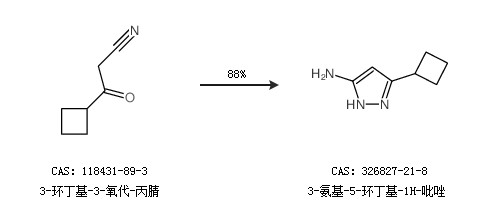 1.通过3-环丁基-3-氧代-丙腈合成3-氨基-5-环丁基-1H-吡唑,收率约88%;