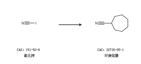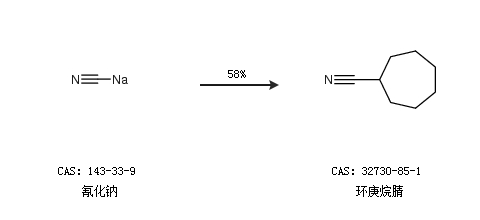 1.通过氰化钠合成环庚烷腈,收率约58%;