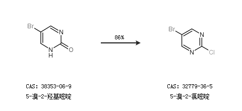 1.通过5-溴-2-羟基嘧啶合成5-溴-2-氯嘧啶,收率约86%;