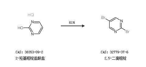 2.通过2-羟基嘧啶盐酸盐合成2,5-二溴嘧啶,收率约61%;
