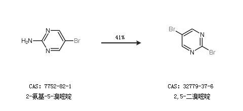 1.通过2-氨基-5-溴嘧啶合成2,5-二溴嘧啶,收率约41%;