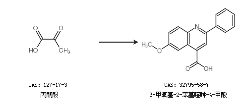 1.通过丙酮酸合成6-甲氧基-2-苯基喹啉-4-甲酸