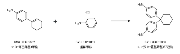 1.通过4-(1-环己烯基)苯胺和盐酸苯胺合成1,1-双(4-氨基苯基)环己烷