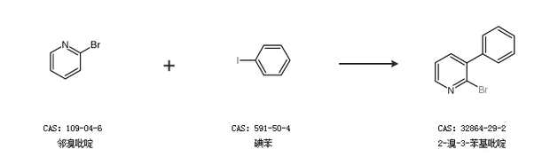 1.通过邻溴吡啶和碘苯合成2-溴-3-苯基吡啶,收率约32%;