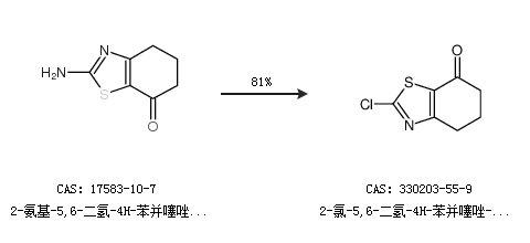 1.通过2-氨基-5,6-二氢-4H-苯并噻唑-7-酮合成2-氯-5,6-二氢-4H-苯并噻唑-7-酮,收率约81%;