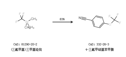 2.通过(三氟甲基)三甲基硅烷合成4-三氟甲硫基苯甲腈,收率约83%;