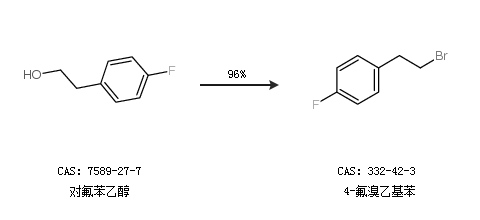 1.通过对氟苯乙醇合成4-氟溴乙基苯,收率约96%;