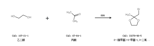 1.通过乙二醇和丙酮合成2-(溴甲基)-2-甲基-1,3-二氧戊环,收率约89%;