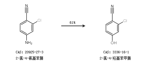 1.通过2-氯-4-氨基苯腈合成2-氯-4-羟基苯甲腈,收率约61%;