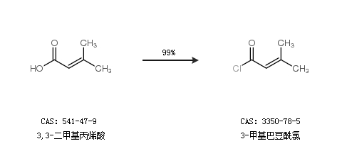 1.通过3,3-二甲基丙烯酸合成3-甲基巴豆酰氯,收率约99%;